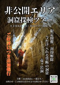 竜ヶ岩洞の一般未公開洞くつ探険ツアー追加催行のお知らせ