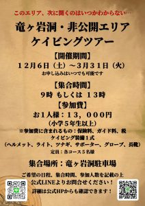 竜ヶ岩洞の一般未公開洞くつ探険ツアー開催のお知らせ